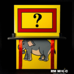 Effect: In absence of the performer an assistant vanishes a picture of an Elephant from inside two boards. But the elephant is discovered by the audience hanging under the tray due to foolishness of another Assistant. The performer then enters into the stage to control the situation. He vanished the elephant, but to foolish assistant exposes the elephant hanging under the tray. Finally the performer takes the tray and vanishes the elephant successfully.