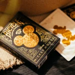 Bicycle Mickey Black and Gold Playing Cards exemplify luxury and style with delicate design elements, hidden Mickeys, and hot-stamped gold foil on each card back.